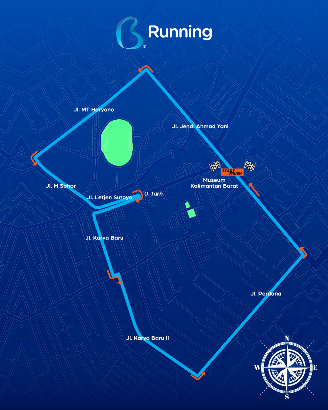 Biznet Fun Run Pontianak 2025 menghadirkan rute lari yang seru dengan perpaduan suasana kota yang dinamis, peserta akan diajak melewati pusat sehingga setiap langkah akan memberikan pengalaman berlari sambil menikmati suasana khas Kota Pontianak.